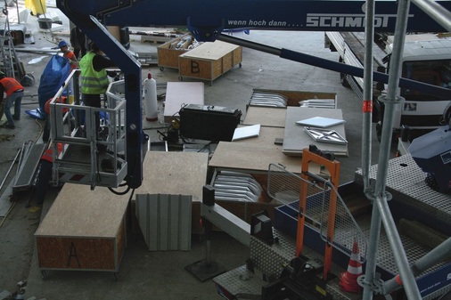 Bei der individuellen Gebäudegestaltung gewinnen zunehmend sogenannte Freiformflächen an Bedeutung. Der konstruktive Aufwand ist sowohl im Bereich der Tragstruktur als auch bei der Fertigung der Bekleidungselemente enorm. Um derartige Freiformen als hochwertige, geschlossene und ebenmäßige Fassaden- oder Deckenflächen entstehen zu lassen ist entsprechendes Know-how unentbehrlich. Ferner sind bei der Fertigung sowie der Montage Hightechsysteme gefordert. In enger Zusammenarbeit mit Porsche, dem Wiener Büro Delugan Meissl Associated Architects und dessen Partner Dipl.-Ing. Martin Josst entwickelte der beauftragte Spenglerfachbetrieb Lummel GmbH & Co. KG aus Karlstadt in Unterfranken die patentierte Drehteller-Montagetechnik des hauseigenen Unterkonstruktionssystems weiter. Ziel war es, die Details der Edelstahl-Decken-Konstruktion sowie deren Anschlusspunkte so exakt wie möglich umzusetzen, wobei das Rautenbild an Anschluss- und Gefälleknickpunkten nicht unterbrochen werden durfte. Um Bautoleranzen auszugleichen und dennoch die 10 bis 50 m weit auseinanderliegenden Referenzpunkte sicher zu „treffen“, arbeiteten die Metallprofis aus Karlstadt mit Rotationslasergeräten. Lummel-Bauleiter Ronny Schmidt: „Unsere Lasermessgeräte befestigten wir mithilfe eines eigens angefertigten Konsolensystems direkt an der Deckenkonstruktion. Wir platzierten die Rotationslaser somit erschütterungsfrei, was bei Arbeiten auf Gerüstpodesten von unschätzbarem Vorteil ist. Zudem waren alle Messergebnisse wiederholbar – eine wichtige Grundvoraussetzung zur exakten Ausrichtung der Rauten und des Fugenbildes“.