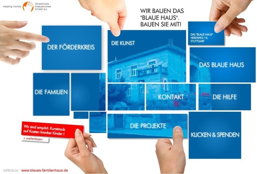 Wie kommt ein sandsteinfarbenes Gebäude mit anthrazitfarbenem Aluminiumdach zu seinem Namen „blaues Haus“? Zumindest in und um Stuttgart dürfte die ausgefallene Geschichte rund um eine Gebäudesanierung und ein entwendetes Bauschild jedem Zeitungsleser bekannt sein. Rückblick: Seit geraumer Zeit wird am Stuttgarter Herdweg ein historisches und architektonisch anspruchsvolles Gebäude von Grund auf saniert. Um auf das Gebäude aufmerksam zu machen, enthüllte der Bauherr, der Förderkreis Krebskranke Kinder e.V. Stuttgart, im Juni 2010 gemeinsam mit dem Künstler Nikolaus Koliusis zum zweiten Mal ein auf dem Bauschild installiertes, blau leuchtendes Kunstobjekt. An derselben Stelle wies bereits zuvor eine Lichtinstallation auf das neue Familienhaus hin, doch leider weckte diese dabei falsches Interesse und wurde von Unbekannten geraubt. So viel Wirbel um ein künstlerisch wertvolles Bauschild gab es in der baden-württembergischen Landeshauptstadt selten. Und spätestens seit der erneuten Enthüllung einer Lichtinstallation ist das zu sanierende Gebäude in der Öffentlichkeit als „blaues Haus“ bekannt.