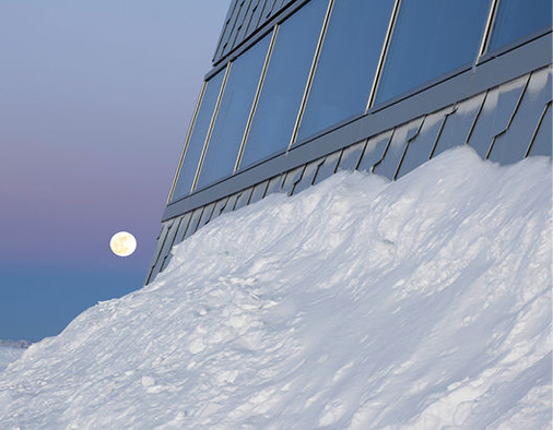 Bauen an extremen Orten erfordert perfekt organisierte Logistik. Auf das 2600 m hohe Weisshorn führt nur eine Luftseilbahn. Der Transport per Hubschrauber war aus Gründen des Umwelt- und Lärmschutzes beschränkt. Der Großteil des Materials sowie das Werkzeug wurde daher per Seilbahn herangeschafft. Natürlich stand für das Heben von Paletten und Material der Baukran zur Verfügung. Dennoch waren für viele Kleinigkeiten oder Nachbearbeitungen zahlreiche Kletterpartien erforderlich. Hinzu kam die Beschränkung der Transportmöglichkeiten durch den Publikumsverkehr. Tagsüber hatten die Touristen Vorrang – für Transportfahrten mit der Seilbahn blieben nur die Randzeiten. Zudem musste der Transport- und Kranbedarf rechtzeitig angemeldet und koordiniert werden. Das anhaltend trockene Wetter bis weit in den Herbst hinein war ein Glücksfall und begünstigte den Baufortschritt. Kurz nach der Fertigstellung sorgte Sturmtief Andrea in Teilen der Schweiz für heftigen Sturm mit Orkanböen und in Arosa für massive Schneefälle. Im Skigebiet auf 2500 m ü. M. lagen bis zu 4 m Schnee – ein Rekord, der in Arosa seit über 50 Jahren nicht mehr gemessen wurde. Damit hat das Gipfelrestaurant auf dem Weisshorn seine erste Wetterprobe bestanden.