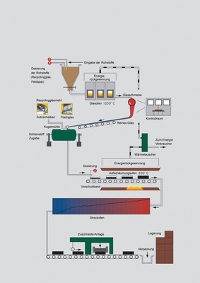 Schaumglas der Marke Foamglas ist ein hochwertiger Wärmedämmstoff für den Hochbau und für betriebstechnische Anlagen. Der Sicherheitsdämmstoff wird im wesentlichen aus Recyclingglas (>66 %) und natürlichen Rohstoffen, die in der Natur nahezu unbegrenzt vorkommen, hergestellt. In einem Schmelzprozess wird aus Recyclingglas, Sand, Dolomit, Kalk und weiteren Substanzen ein Glas mit genau definierten Eigenschaften gewonnen. Anschließend wird das Glas gemahlen, mit einer geringen Menge Kohlenstoff versetzt und in Edelstahlformen gegeben. Die Formen durchlaufen dann einen Ofen, in dem das geschmolzene Glas aufschäumt. Dabei entsteht eine hermetisch abgeschlossene Materialstruktur mit dünnen Zellglaswänden, die bei einem kontrollierten Abkühlprozess erhalten bleiben. Der leichte und gleichzeitig feste Dämmstoff besteht aus Millionen vollständig geschlossener Glaszellen mit ebenso vielen Hohlräumen. Diese Zellstruktur ist für die absolute Wasser- und Dampfdichtigkeit und die stauchungsfreie Druckfestigkeit sowie die guten Dämmeigenschaften verantwortlich. Der Dämmstoff ist langlebig, wodurch ein äußerst günstiges Kosten-Nutzen-Verhältnis erzielt wird. Zur Herstellung setzt die Deutsche Foamglas GmbH ausschließlich ökologisch erzeugten Strom ein.