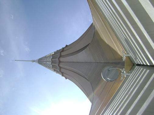 Der erste Eindruck war absolut überwältigend! Heerscharen von Arbeitern waren auf dem Gelände unterwegs. Die Größe der Baustelle und die Höhe des Daches flößten mir gehörigen Respekt ein. Die Ausmaße dieses Gebäudes lassen sich nur schwer in Zahlen ausdrücken. Die Gesamthöhe bis zur Spitze beträgt nahezu 125 m, die Gesamtbreite mit Straße und der darunter liegenden Tiefgarage dürfte die 200-m-Marke gut überschreiten. Alleine die großen Pyramiden auf dem Dach des sechsten Stockwerkes haben mit einer Grundfläche von 16 x 16 m und einer Höhe von 11 m die Ausmaße eines Zweifamilienhauses. Die Dachfläche des Hauptturmes beträgt etwa 6500 m² welche anteilig in Doppelstehfalztechnik sowie als einfacher Flachfalz ausgeführt wurde.