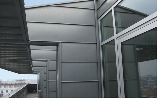 Material: vorbewittertes Titanzink nach UNI EN 988, Marke Zintek