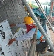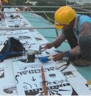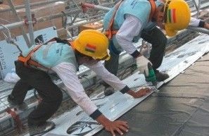 Das Montageteam vor Ort bestand in Spitzenzeiten aus bis zu 160 Arbeitskräften. Nur so war es möglich, den engen Zeitplan einzuhalten und den gesamten Dachaufbau innerhalb von acht Wochen fertigzustellen. Dabei waren Monteure aus dem gesamten asiatischen Raum beteiligt. Durch die perfekte Organisation sowie die Maßhaltigkeit der Schindeln konnten die Monteure vor Ort ohne Verzögerungen beziehungsweise schon vor dem eigentlichen Fertigstellungstermin eine überzeugende Arbeit abliefern. Diese zeigt wieder einmal, was durch moderne Klempnertechnik möglich ist. Schade nur, dass diese Spitzenleistung wohl niemals verfilmt werden wird.