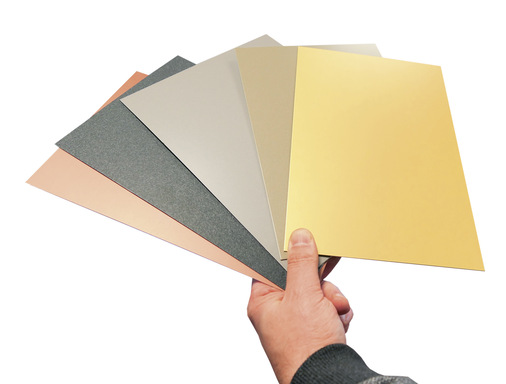 Für außergewöhnliche Projekte etwa im Architektur- und Fassadenbereich ist darüber hinaus bandeloxiertes Aluminium mit einer Schichtdicke von 10 bis 12 μm lieferbar. Neben dem Naturton E6EV1 ist das Material unter anderem in Gold, Kupfer, Bronze und Schwarz erhältlich.