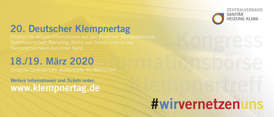 Es ist wieder so weit! Am 18. und 19. März 2020 trifft sich die Branche, dann zum 20. Mal, auf dem Deutschen Klempnertag. Die Veranstaltung findet erstmals in Ulm statt und wird ganz im Zeichen modernen Networkings stehen. Ziel dabei ist es, Unternehmer besser miteinander zu vernetzen und den Nachwuchs mit erfahrenen Kollegen zusammenzubringen. Die Tagungsteilnehmer erhalten aktuelle Informationen aus den Bereichen Klempnertechnik, Betriebswirtschaft, Marketing und Recht. Außerdem ist der Klempnertag 2020 ein wichtiger Trendbarometer rund um das Klempnerhandwerk. BAUMETALL informierte sich bei Michael Kober (ZVSHK-Referent Klempnertechnik) über die traditionsreiche ZVSHK-Veranstaltung.