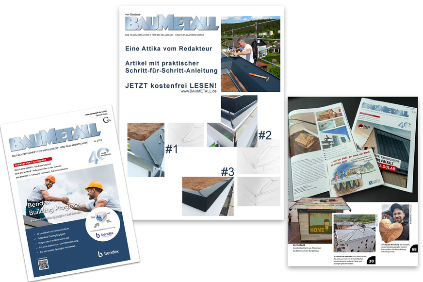 BAUMETALL-Ausgabe 4/2025 ist in der Druckerei und schon bald verfügbar. Neben informativen Berichten für Zukunftsspengler und solche die es werden möchten, sind Artikel und Tipps rund um das flache und flach geneigte Dach enthalten. Wer die Ausgabe nicht verpassen möchte, kann den Service zur Einzelheftbestellung nutzen oder ein kostenfreies Schnupperabo ordern.