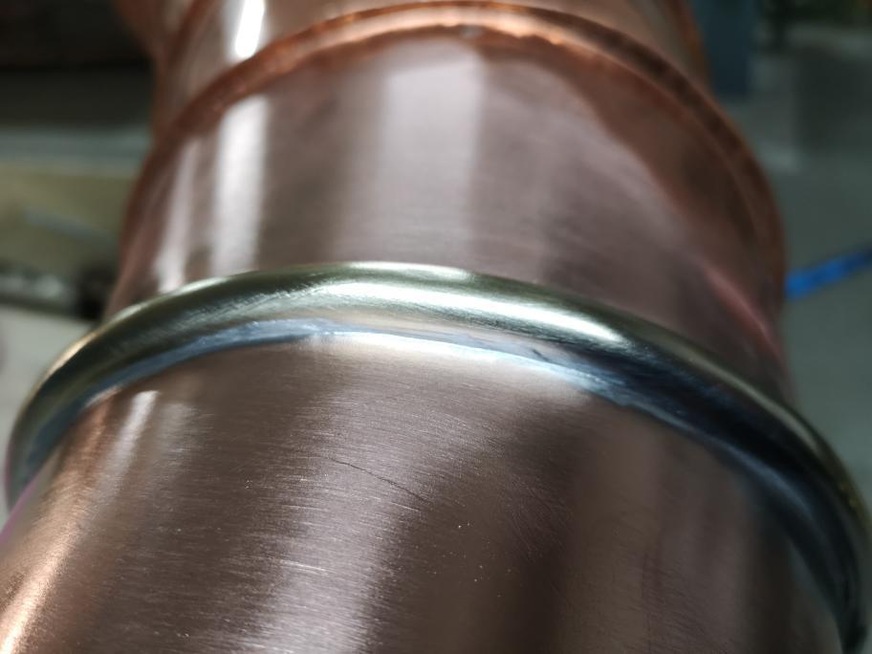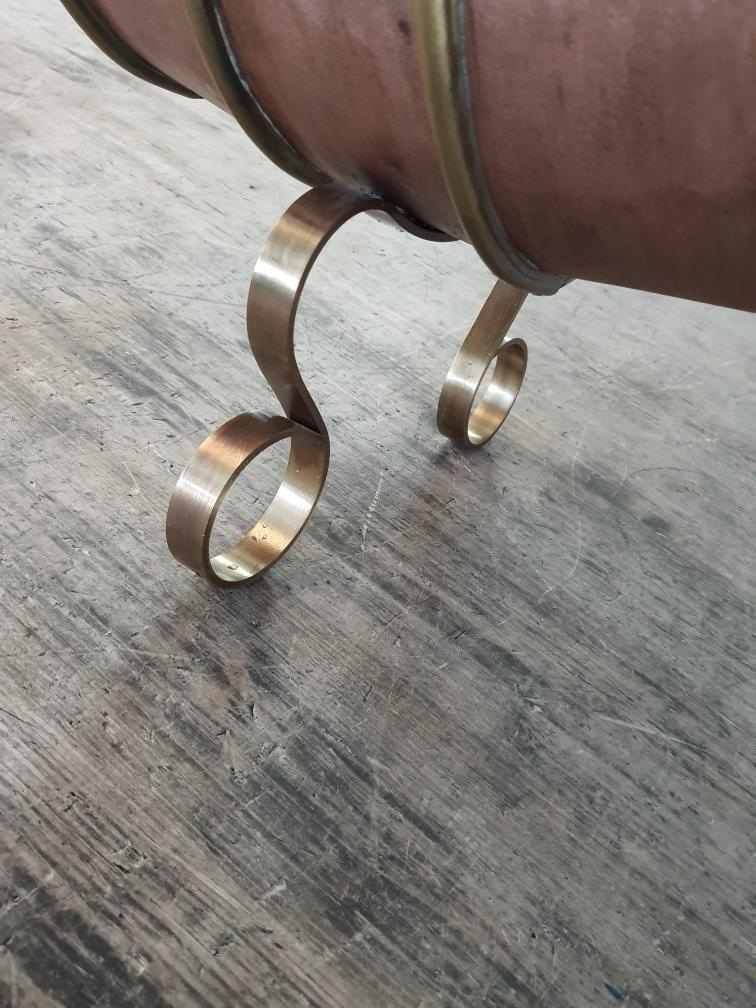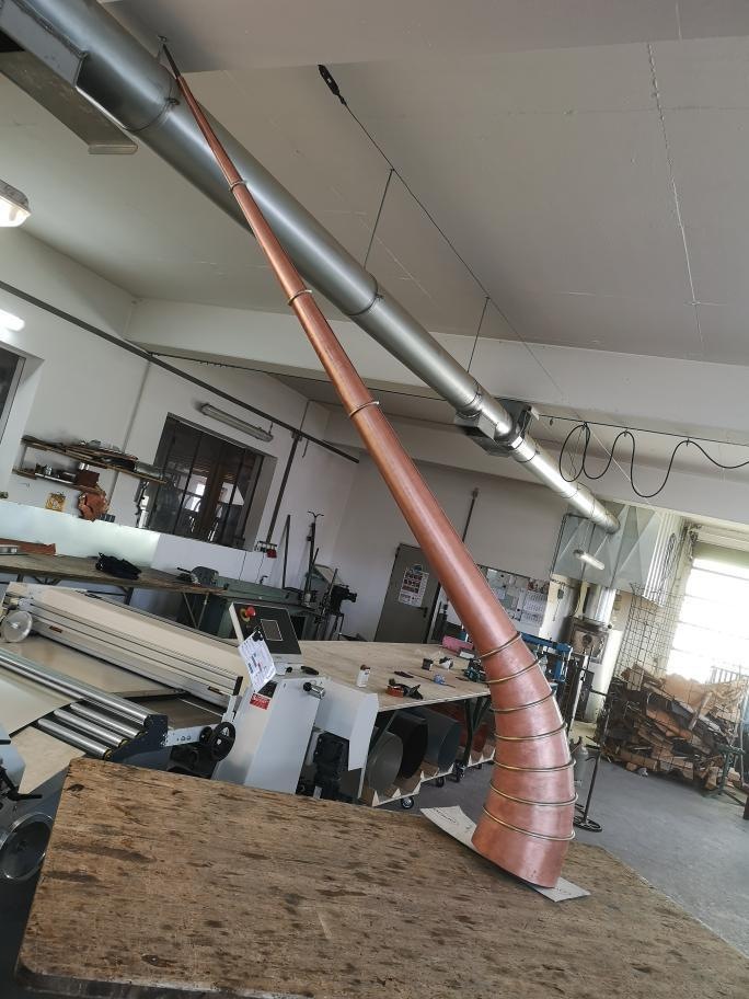 Da das Instrument nicht nur zur Dekoration, sondern natürlich auch zum Musizieren gedacht war, wurde an mehreren Abenden an der richtigen Länge für den Klang getüftelt. Danach ging es mit den optischen Feinheiten weiter. Um das Stück noch eleganter wirken zu lassen, wurden auf die Falzverbindungen noch Messingringe aufgesetzt. Es versteht sich fast von selbst, dass es nach Abschluss der Arbeiten natürlich ein kleines Ständchen gab.