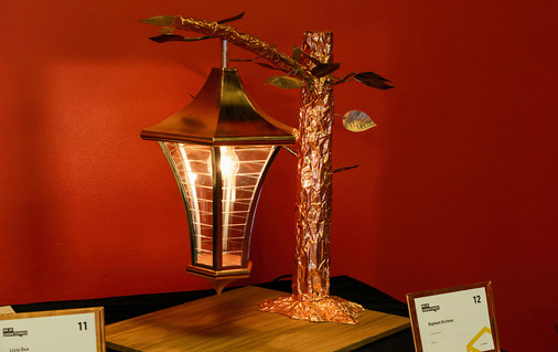 Ein glanzvoller Höhepunkt war außerdem die feierliche Prämierung des Kreativwettbewerbs. Insgesamt 16 Azubis hatten teilgenommen und eindrucksvoll unter Beweis gestellt, wie viel handwerkliches Geschick und künstlerisches Gespür im Branchennachwuchs steckt. Unter dem Applaus des begeisterten Fachpublikums holte Moderatorin Annina Campell die Teilnehmer und Preisträger ins Scheinwerferlicht – eine große Bühne für die „Herzbluthandwerker von morgen“. Den ersten Platz sicherte sich Livio Dux, der im Gewerblichen Berufs- und Weiterbildungszentrum St. Gallen und vom Fachbetrieb A. Ziegler Spenglerei und Bedachungen, Bütschwil, ausgebildet wird. Er überzeugte die Juroren mit seinem beeindruckenden Werk „Kunst am Bau(m)“. An einem stilisierten Baum aus Kupfer befestigte der junge Spengler eine Laterne aus Kupfer und setzte somit das Wettbewerbsmotto auf höchst zweideutige und raffinierte Weise um. Bravo!