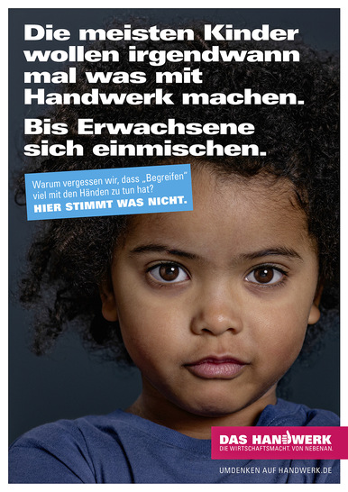 Hier stimmt was nicht, heißt die neue bundesweite Kommunikationsoffensive des Handwerkes. Sie ruft angesichts des Fachkräftebedarfs mit einer provokanten Frage zu gesellschaftlichem Umdenken auf: „Handwerk liegt in der Natur des Menschen. Was hindert so viele daran, es zum Beruf zu machen?“ Deutschland steht vor großen Herausforderungen: beim Klimaschutz, bei der Digitalisierung, bei der Modernisierung der Infrastruktur und im Wohnungsbau, bei ressourcenschonendem Leben und Arbeiten generell. Und diese Aufgaben können nicht warten. Entsprechend große Ziele hat sich die neue Bundesregierung bei diesen Themen gesteckt. Erreicht werden können sie aber nur mit Handwerkerinnen und Handwerkern, die die Vorhaben praktisch umsetzen. „Fachkräftesicherung ist daher nicht weniger als eine Frage von Zukunftssicherung und Wohlstandssicherung in unserem Land“, kommentiert Hans Peter Wollseifer, Präsident des Zentralverbands des Deutschen Handwerks, die Lage. Große Sorge bereitet ihm und den eine Million Handwerksbetrieben in Deutschland, dass bereits heute in vielen Handwerksberufen mehr Fachkräfte gebraucht werden. Mit der bundesweiten Kommunikationsoffensive will das Handwerk eine Gesellschaft zum Umdenken aufrufen, die Wissen jahrzehntelang über Können gestellt hat. „Es muss endlich in den Köpfen ankommen, dass eine berufliche Ausbildung genauso viel wert ist wie eine akademische“, fordert Hans Peter Wollseifer. „Damit die berufliche Ausbildung attraktiv bleibt, müssen die Berufe Wertschätzung erfahren. Die Menschen, die sie ausüben, müssen spüren, wie wichtig sie für die Zukunft des Landes sind.“ Der dringende Appell des Handwerkspräsidenten: „Wenn wir die Fachkräftelücke nicht schließen, vergeben wir uns, unseren Kindern und unserem Land eine große Chance.“