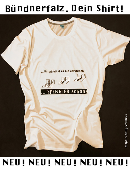 Dieses T-Shirt, Hoodies, Mützen, Tassen und sogar Baby-Lätzchen mit Klempner-Motiven sind im Online-Shop Spreadshirt erhältlich. Die meisten Kleidungsstücke sind in verschiedenen Farben sowie Größen und sogar in Mundart für bayerische bzw. schweizerische Spengler oder schwäbische Flaschner verfügbar. mehr