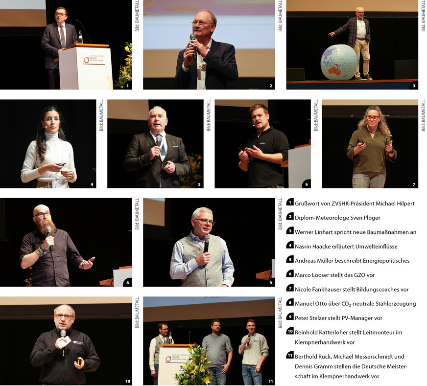 Tag zwei der Veranstaltung punktete mit weiteren zukunftsweisenden Vortragsthemen. Beispielsweise sprach Dr. Gunter Mann (Hauptgeschäftsführer Bundesverband Gebäudegrün e. V.) über Dach und Fassadenbegrünung und darüber, wie mit entsprechenden Maßnahmen ein wichtiger Beitrag zum Klimaschutz geleistet werden könne. Über die CO₂-neutrale Herstellung von Deckwerkstoffen aus Metall bzw. Stahl referierte Dr. Manuel Otto (SSAB Europe), und Christian Stinner (ZVSHK-Referent IT-Projekte) informierte über die digitale Auftragserfassung von Kundenanfragen im SHK-Serviceportal.