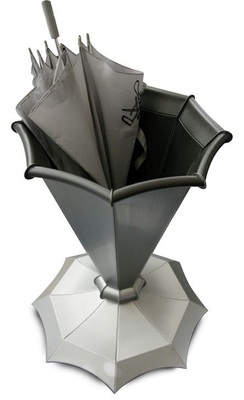 Schirmständer aus Titanzink mit Innengefäß und geschwungenem Wulstabschluss sowie Sockel mit Drahteinlage