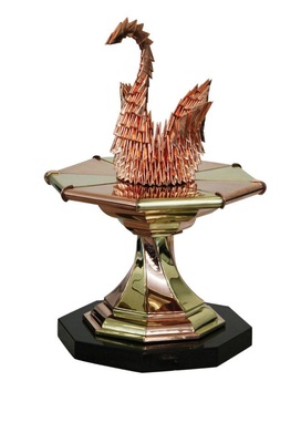 Meistertisch aus Kupfer und Messing mit innenliegend gefalzten Segmenten