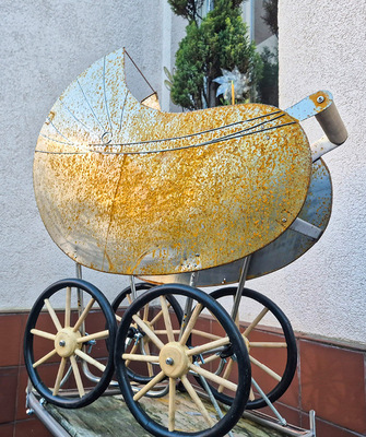 Wenn ein Flaschnerkollege Familiennachwuchs erwartet, dann darf es ruhig mal etwas Besonderes sein, dachte sich BAUMETALL-Leser Volker Eisenhard. Kurzentschlossen zauberte er eine Überraschung der blechernen Art, die selbst den Klapperstorch noch neidisch macht. Anstatt schnöder Babykleidung oder Windeltorten gab’s für den frischgebackenen Papa eine handgefertigte, stilisierte Kinderwagen-Skulptur aus 0,6-mm-Feinblech. Und wo landete das Meisterwerk? Natürlich standesgemäß auf der Schachtabdeckung des Schornsteins. „Die Gegebenheiten waren, um es im Sportjargon zu sagen, ja eine einzige Steilvorlage, die geradezu nach Verwandlung schrie!“, schwärmt der kreative Flaschner. „Ein Einfamilienhaus mit Regenrohr und Straßenlaterne, dazu ein exponiert stehender, gut einzusehender Schornstein – da konnte ich einfach nicht widerstehen.“ Und so thront nun der blecherne Kinderwagen stolz auf dem Dach und verkündet der Nachbarschaft: Hier gibt‘s Nachwuchs – und einen Flaschner mit Humor!