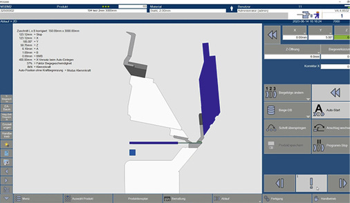 Eine weitere Innovation dieser Schwenkbiegemaschine für die Dünnblechbearbeitung bis 2,5 mm Blechstärke ist die Zudrückfunktion: In Verbindung mit der Option der drehbaren Oberwange ist es möglich, die Oberwange zurückzusetzen, das Blech zu klemmen und dabei der Biegewange Platz zu machen, um Hohlumschläge zu biegen. Auf großes Interesse stieß auch die Vorführung des Radiusbiegens. Dabei profitiert die PowerBend Multi von NC-Steuerungstechnik, die innerhalb der Schröder Group für industrielle Schwenkbiegemaschinen entwickelt wurde: Die PowerBend Multi beherrscht das „Radius-Step-Bending“. Dabei wird das Blech mit der Oberwange gegen einen Winkel gedrückt, der von Unterwange und Biegewange gebildet wird. So entsteht eine leichte Rundung. Dies wird nun beliebig oft in feinen Schritten wiederholt. Das Ergebnis ist ein rundgebogenes, formschönes Profil.