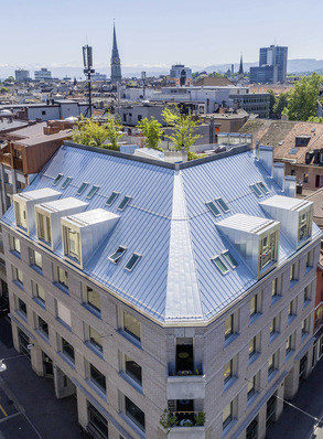 Ein Neubau im Züricher Kreis 4 (Chreis Cheib) – genauer gesagt an der Ecke Lang- und Brauerstraße – überrascht mit einem formvollendeten Aluminiumdach. Geplant wurden Gebäude und Dachfläche samt Doppelstehfalzdach von den Züricher Architekten Penzel-Valier Architektur GmbH –...