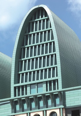 Dreiecke, trapezförmige Dachflächen und vorbildliche Stehfalzarbeiten sind Erkennungsmerkmale des multifunktionalen Kulturzentrums UTOR: Stefan Holz