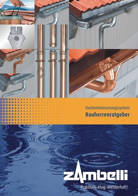 Hilfestellung zur Planung sowie zum Verkauf eines Dachentwässerungssystems bietet der Zambelli-Bauherrenratgeber. Ansprechende Panoramaseiten im Innenteil der kostenlosen Broschüre verschaffen einen guten Überblick und unterstreichen Fachkompetenz beim Kundengespräch.