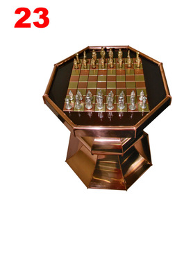 Standfuß mit SchachbrettAchtteiliger Grundkörper mit EinlegearbeitenMaterial: Kupfer / MessingVerbindung: Falztechnik nach innen und nach außen