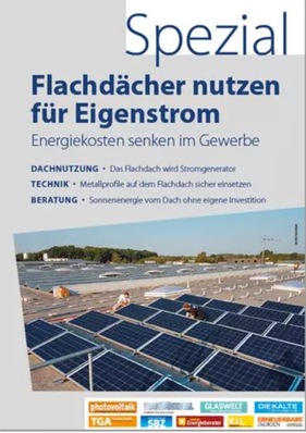 Sie möchten Gewerbedächer für die Produktion von Eigenstrom fit machen? Sie möchten die Energieeffizienz von Flachdächern steigern? Dann sind Sie hier genau richtig! Unsere Sonderpublikation Flachdach zeigt auf, welche Konzepte dabei eine Rolle spielen und welche Anforderungen Bauherren, Handwerker, Planer oder Architekten beachten sollten.