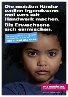 „ Hier stimmt was nicht“ – die neue bundesweite Kommunikationsoffensive des Handwerkes ist gestartet. Sie ruft angesichts des Fachkräftebedarfs mit einer provokanten Frage zu gesellschaftlichem Umdenken auf: „Handwerk liegt in der Natur des Menschen. Was hindert so viele daran, es zum Beruf zu machen?“