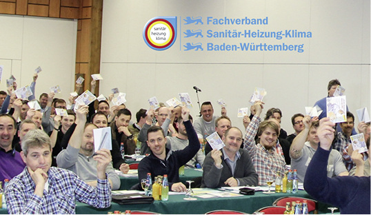 Bereits im Februar 2008 fand der traditionelle Klempnertreff des Fachverbandes Sanitär-Heizung-Klima Baden-Württemberg statt. Etwa 80 Teilnehmer aus Klempnerfachbetrieben sowie Vertreter der Herstellerindustrie waren nach Titisee in den Schwarzwald gereist. “Mehr Farbe für die grauen Zellen: