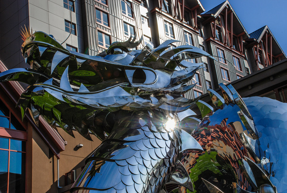 Es kommt selten vor, dass ein Gebäude nach den Drachen auf seinem Dach benannt wird. Die Zahl der Plastiken und ihre Standorte betonen die Architektur des Drachenhauses, die fernöstlichen Baustilen nachempfunden wurde AUTOR: Henry Rasch