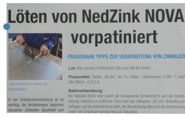 Erhöhte Sicherheit und langfristiger Einsatz von Titanzink unter technisch schwierigen Bedingungen? Genau dafür hat NedZink die neue Qualität Nova Pro-Tec entwickelt. Ausgangsmaterial für das innovative Produkt ist die seit 2005 auf der werkseigenen Patinieranlage hergestellte Oberfläche Nova...