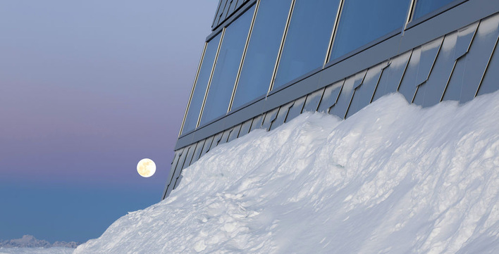 Auf dem Weisshorn-Bergplateau steht auf 2653 m Höhe ein rhombenförmiger Monolith. Dessen Schuppenhaut aus Aluminium sowie die darunter liegenden Dämm- und Isolationshäute sorgen dafür, dass weder Eis noch Schnee, weder Regen noch Sturm und weder Sonne noch Hitze dem Gebäude etwas anhaben können. Wie das funktioniert, verrät Ihnen AUTOR: Beat Scherrer