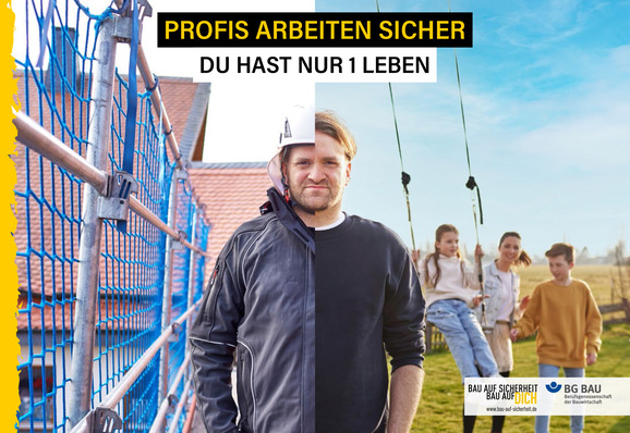 Mit dem Slogan „Profis arbeiten sicher. Du hast nur 1 Leben.“ startet die BG Bau eine neue Kampagne, mit der über die sozialen Netzwerke das Bewusstsein der Beschäftigten für den Arbeitsschutz in ihrem Berufsalltag gestärkt werden soll.