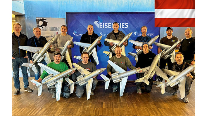 Mit Überschall in die Azubiwerbung: Spenglermeister aus Österreich bauen beeindruckende Flugzeugmodelle aus Titanzink und begeistern den Nachwuchs sowie alte Hasen. Anfang Oktober 2022 übrigens im Süden Deutschlands – stilecht im Hangar einer Flugzeugwerft