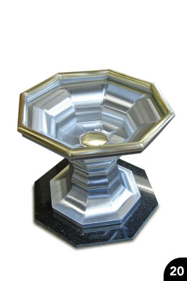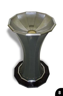SäulenbeckenZwölfteilige Säule mit nach innen abgesetzten FalzverbindungenMaterial: Zink und MessingVerarbeitung: Wulst, Niet, Steck- und Lötverbindung