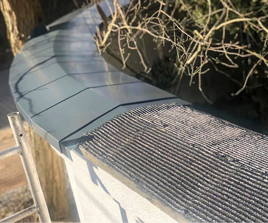 Komplizierter ist es bei der Montage von nicht selbsttragenden Abdeckungen, die vom Spengler selbst angefertigt werden. Hier befinden wir uns in einer rechtlichen Grauzone. Der Spengler muss die für die Befestigung erforderliche Berechnung selbst vornehmen oder von einem Statiker ausführen lassen. Die ZVSHK-Klempnerfachregel hilft uns da leider nicht weiter. Hierzu steht im Kapitel 4.12.3 „Hilfs- und Stützkonstruktionen“: