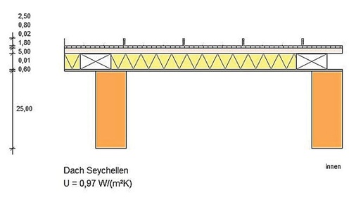 Dieser Dachaufbau wurde an einigen Häusern ausgeführt. Schichtaufbau von außen nach innen: