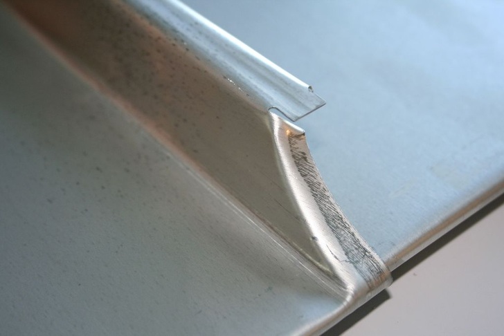 Zurück zum Stehfalz: Für diesen bietet Schlebach mit dem Flitzer, der Piccolo und der FK1 Werkzeuge an, die – richtig angesetzt – die Falze perfekt schließen, ohne dabei unerwünschte Spannungen in die Scharen einzubringen. Auf diese Weise blieben bei der Demonstration mit dem Rollensatz für Edelstahl die Scharen eben auf dem Untergrund liegen und der Falz schnurgerade.