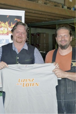 Bozen, 19. April 2013: Zum Abschluss der Workshopreihe treten auch die teilnehmenden Kunden des Handelshauses Alpewa gegeneinander an. Jeder von ihnen möchte das Perkeo-Sicherheitsset gewinnen. Dazu müssen auch in Bozen zwei 10-cm-Uginox-Probestücke in möglichst kurzer Zeit zusammengelötet werden. Was zunächst einfach aussieht, entpuppt sich schnell als Herausforderung. Die lose aufeinander liegenden Edelstahlbleche verrutschen leicht und wer seine Löttemperatur zu hoch einstellt, wird mit einer langen Auskühlzeit bestraft. Dass die kürzeste Zeit knapp unter fünf Sekunden liegt, ist kaum vorstellbar.