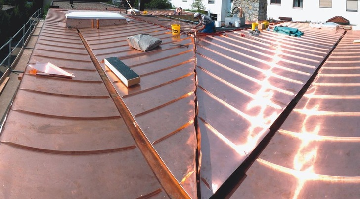 Material: Kupfer 0,7 mm, Stehfalzbedachung und Flachdachrandbekleidung