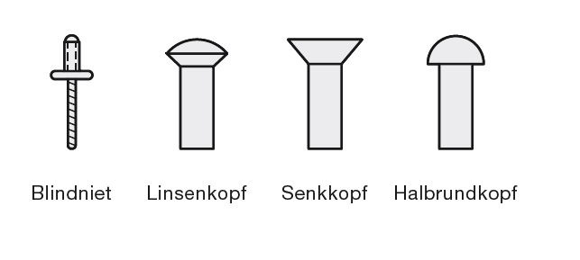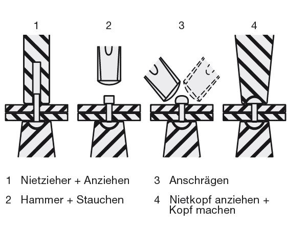 Bei der Verwendung von Halbhol- und Vollnieten ist der Zugang von zwei Seiten nötig.