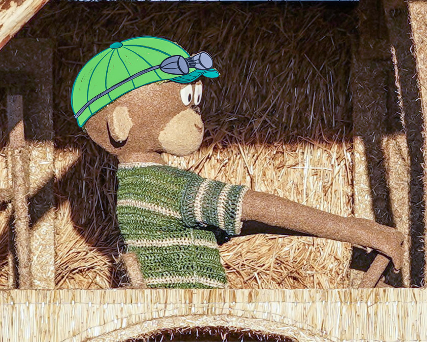 Mütze und Brille aus Blech, Gesicht vom Äffle aus dem 3D-Drucker: So lautet die Beschreibung dieses Entwurfs, der seine Inspiration auf einem Festival für Strohskulpturen fand. Wir meinen: Die aus einzelnen Segmenten zusammengesetzte Schirmmütze mit mehrteiligem Schild und ebenfalls aus Segmenten zusammengesetzte Brille sind absolut tierisch!