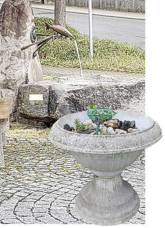 Zeitgleich entdeckt: Die Kombination aus mehrteiliger Vase und wasserspeiendem Fisch hat das Zeug zum Masterpiece. Natürlich nur, wenn der Spengler tief in die Trickkiste greift und die segmentierten Kupferteile geschickt miteinander verbindet. Das Innenbecken wird getrieben und wasserdicht verlötet.