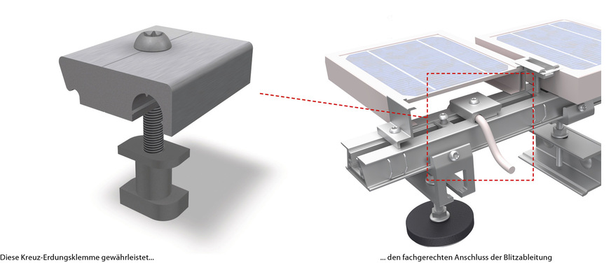 Zum Einfangen des Blitzes dienen entweder leitfähige Fangstangen oder Fangleitungen in Netzmaschenform, die über der zu schützenden Fläche montiert und mit der Erdungsanlage gekoppelt sind. So ergeben sich unter den Fangvorrichtungen sogenannte Schutzräume, in die kein direkter Blitzeinschlag erfolgt – und in die das zu schützende Objekt und die PV-Anlage montiert werden müssen. Die PV-Anlage selbst wird ebenfalls an dieses Ableitungsnetz angeschlossen. Seriöse Systemhersteller fragen diese Anforderungen ab und bieten geprüfte Komponenten an, die einfach zu verbauen sind.