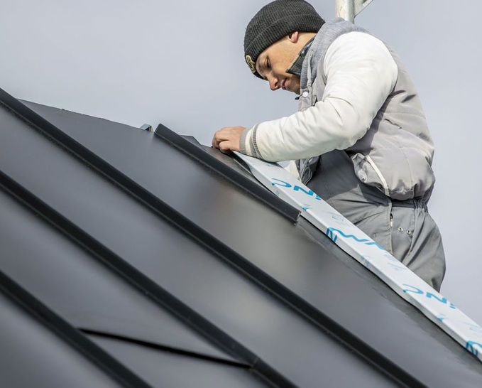 Zwei Steildächer auf einem Geshäftshaus trotz aufwendiger An- und Abschlüsse in Rekordzeit eindecken, und zwar in edler Stehfalzoptik, aber ohne Spezialwerkzeug - wie geht das? Ein spezielles Klick-System macht es möglich. mehr