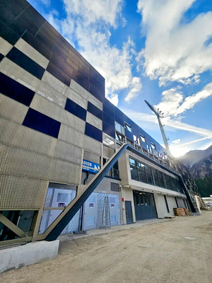 Ausgeführt wurde die Fassade vom Fachbetrieb Dachservice Seyr GmbH aus dem Nachbarort Rasen, etwa auf halbem Weg zwischen Toblach und Bruneck. „Für das Projekt wurden nur lokale Unternehmen engagiert“, erzählt Anna Seyr, die aktuell ihre Lehre im väterlichen Unternehmen abschließt. In früheren Jahren wurden im Stadion in der Wintersportsaison immer Container aufgebaut, in denen die Kommentatoren und Reporter untergebracht waren – bis sie endlich das neue, wohnliche und elegante Servicegebäude beziehen konnten.