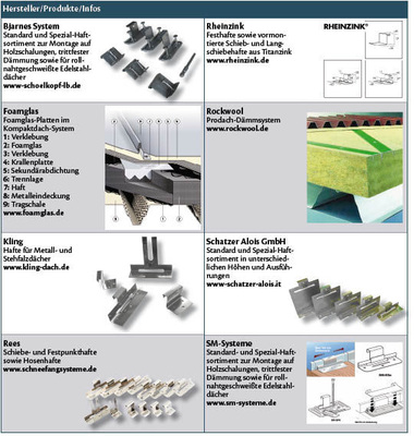 Was bedeutet das für den verarbeitenden Klempner? Eine pauschale Aussage ist an dieser Stelle nahezu unmöglich. Selbst wenn sich für Trennlagen-Typ xy 32 mm hohe Hafte als optimal erweisen, können bei den Trennlagen der Marke yz die Scharen dann bereits „in der Luft“ hängen und somit zu lose montiert sein. Die Haft-Hersteller reagieren auf diese Arten-Vielfalt mit Hafthöhen in zahlreich zu Verfügung stehenden Höhen. Ausgehend von 25 mm sind Hafthöhen in abgestuften 2-mm-Schritten bis hin zur Sonderhöhe erhältlich. Auch die Beschaffenheit der Hafte selbst ist in vielen Formen, mit und ohne Rundecken, mit großformatigem Haftfuß und sogar mit entsprechend ausgearbeiteter Haftabdeckung lieferbar. Ob der Preisdruck den Einsatz entsprechend hochwertiger Hafte zulässt, steht auf einem anderen Blatt, doch wenn Gutachter den Abriss ganzer Dachflächen fordern, ist eine Überlegung nach Art und Beschaffenheit der Hafte bereits zu spät.