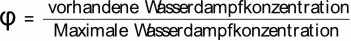Der Überschuss ist nicht mehr in der Luft als Wasserdampf gelöst, sondern bildet feine Tröpfchen, welche als Nebel oder Wolken sichtbar werden. Ist der Wasserdampf in der Luft in geringerer Konzentration vorhanden als bei der betreffenden Temperatur löslich wäre, so nennt man die Luft ungesättigt. Das Verhältnis der vorhandenen Wasserdampfkonzentration zur maximal löslichen Konzentration bei der betreffenden Temperatur bezeichnet man als relative Luftfeuchte φ (sprich phi)