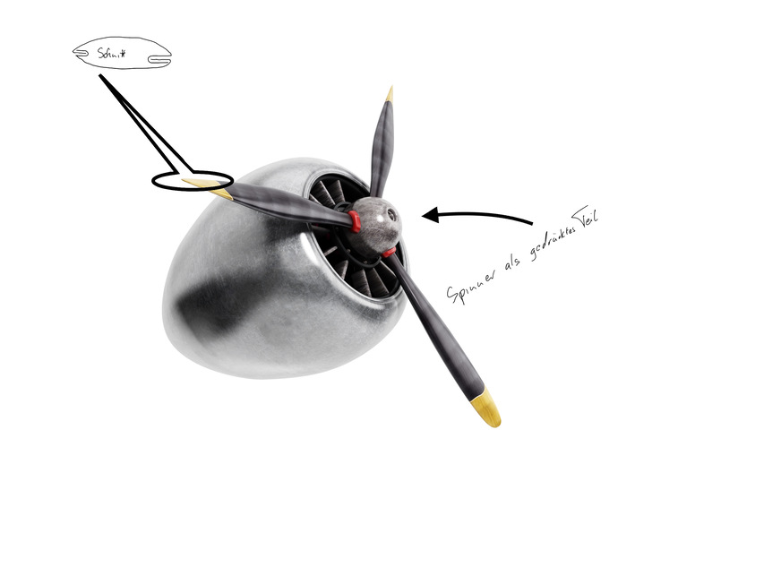 Hier geht’s rund! Und das nicht nur wenn sich der Propeller dreht. Auch die Anfertigung der Abwicklung sowie die handwerkliche Herstellung des in sich gedrehten Bauteils aus Blech verlangen meisterliches Know-how. Der Einsender ist davon überzeugt, den innen liegenden Falz entsprechend vorbereitet so anbringen zu können, dass die Verbindung nahezu „unsichtbar“ wird. Besonders anspruchsvoll wäre dabei, die Drehung der Profile spannungsfrei umzusetzen.