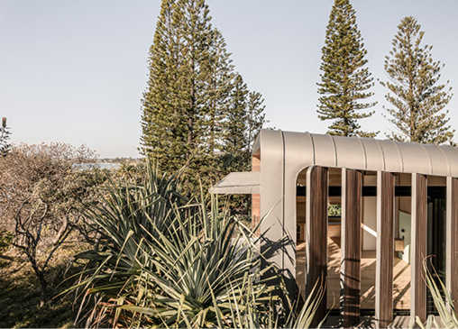 Coolum Beach ist ein Küstenort an der Sunshine Coast in Queensland, Australien. Er ist bekannt für seinen Sandstrand, den Mount-Coolum-Nationalpark und die Nähe zur Großstadt Brisbane, die etwa 120 km entfernt ist. Mitten in diesem traumhaften Umfeld wurde unlängst ein Gebäude fertiggestellt, dessen detailverliebte Gebäudehülle aus Metall in Fachkreisen sicherlich für großes Aufsehen sorgen wird. Mit der Planung wurden die Architekten von Sparks Architects beauftragt. Sie verfolgen das Ziel, Bauherrenwünsche mit Architektenvisionen zu verschmelzen. Das Team aus der 6 km weiter nördlich gelegenen Küstenstadt Peregian Beach glaubt, dass Gebäude, die ein Gleichgewicht zwischen der natürlichen und der gebauten Umwelt schaffen, Räume ermöglichen, die uns leiten, beleben, ausruhen, verführen und inspirieren. Doch wie so oft treffen ausgefallene Architekturvisionen auch Down Under regelmäßig auf den harten Handwerkeralltag oder anders formuliert: Besondere Planungsideen sind nur so gut wie die Handwerker, die sie letztlich umsetzen. Dass Fachbetriebsinhaber Nick Ions und Spenglerpolier René Stüssi gemeinsam mit dem Spezialistenteam der Ionclad Pty Ltd besonders gefordert waren, kommt somit nicht wirklich überraschend.