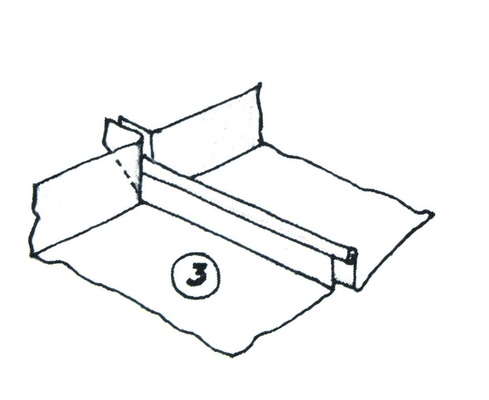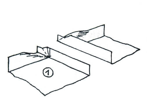 Diese Handskizzen aus dem Lehrbuch „Fachkunde der Bauklempnerei“ von Herbert Schlenker, verdeutlichen, wie stehend eingeführte Gratverfalzungen entstehen.