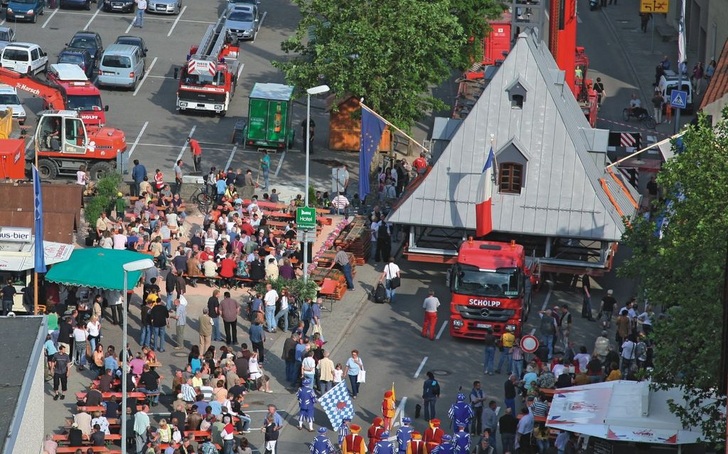 Um das ehemals mächtigste Bollwerk der Stadtbefestigung in seinen Urzustand zurückzuversetzten, war neben zahlreichen Arbeitsstunden ein enormer logistischer Aufwand erforderlich. Zunächst hievte einer der größten Teleskopkräne Deutschlands das in Rekordzeit vorgefertigte, rund 35 t schwere Dach auf einen Tieflader. Im Schneckentempo, aber dafür begleitet von Spielmannszügen, Trachtengruppen und Fahnenschwingern sowie den in mittelalterliche Trachten gekleideten Bauhütten-Handwerkern, machte sich der überbreite Schwertransport auf den Weg. Nachdem das auf einer Grundfläche von 9 mal 9 m errichtete Dach den Fuß des Pfeiferturmes erreicht hatte, wurde es genau 319 Jahre und zehn Monate nach seiner Zerstörung feierlich wieder aufgesetzt.