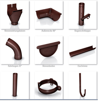 Das Boehme Systems Dachrinnensystem, zu dem die klassische Boehme Systems Halbrundrinne, Regenfallrohr sowie entsprechende Zubehörteile gehören, zeichnet sich durch seine außergewöhnlich gute Verarbeitung und hohe Passgenauigkeit aus. Mit Steckverbindungen in konisch bearbeitete Aufnahmen wirkt das Dachrinnensystem wie aus einem Guss. Da jedes einzelne Element in den drei Standardfarben Kordia Red, Goura Grey und Criollo Brown erhältlich und somit farblich exakt auf die Boehme Systems Classic-Schindel abgestimmt ist, entsteht zudem ein optisch einheitliches Erscheinungsbild.